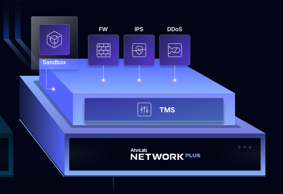 AhnLab NETWORK PLUS는 방화벽, IPS, 디도스 대응, 샌드박스 등 여러 솔루션들이 유기적으로 연동하여 최상의 보안 역량을 제공하는 네트워크 보안 플랫폼입니다.