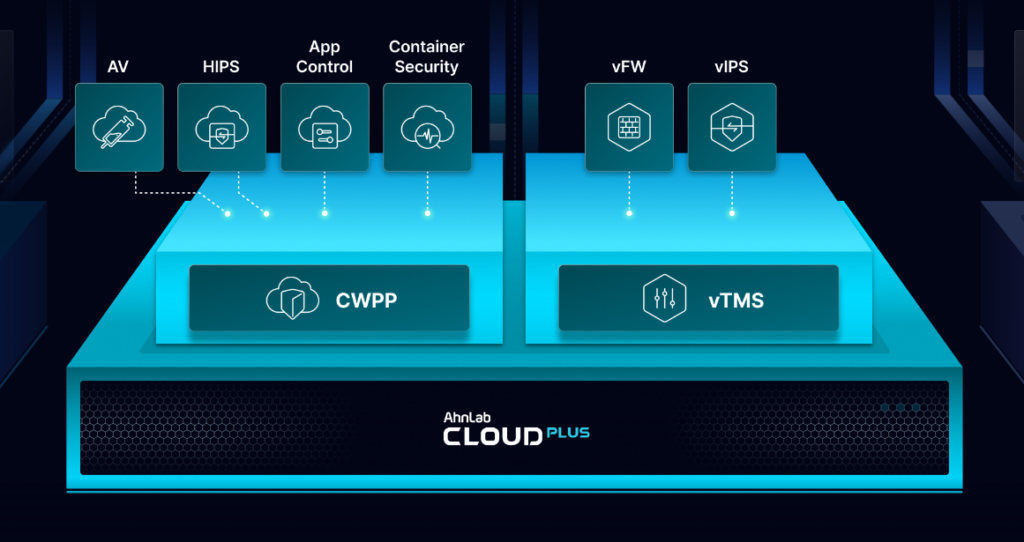 AhnLab CLOUD PLUS는 클라우드 워크로드 보안 플랫폼(CWPP) 부터 클라우드 최적화 방화벽, IPS 등 최상의 기술력을 갖춘 솔루션으로 고객의 디지털 혁신 기반을 마련합니다.