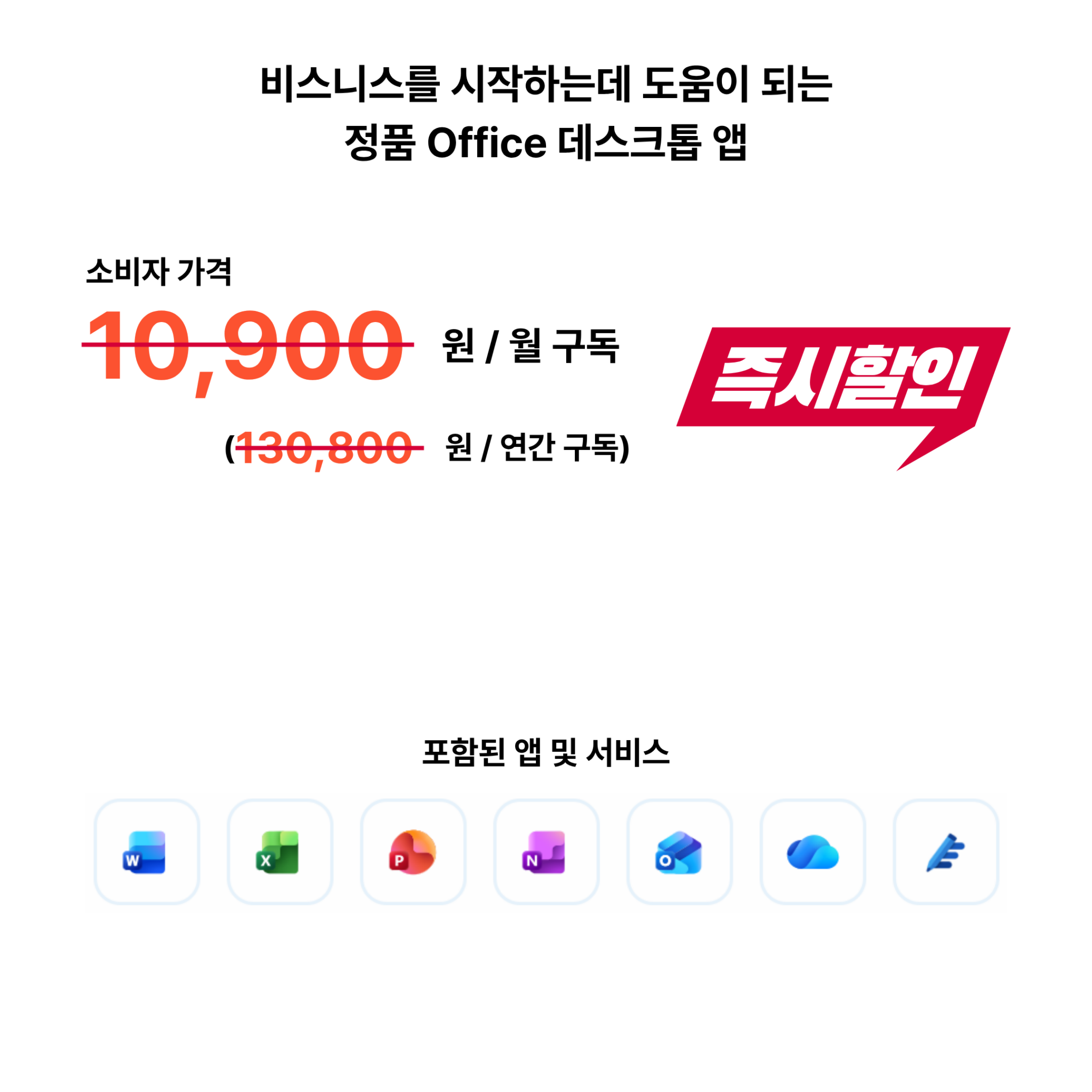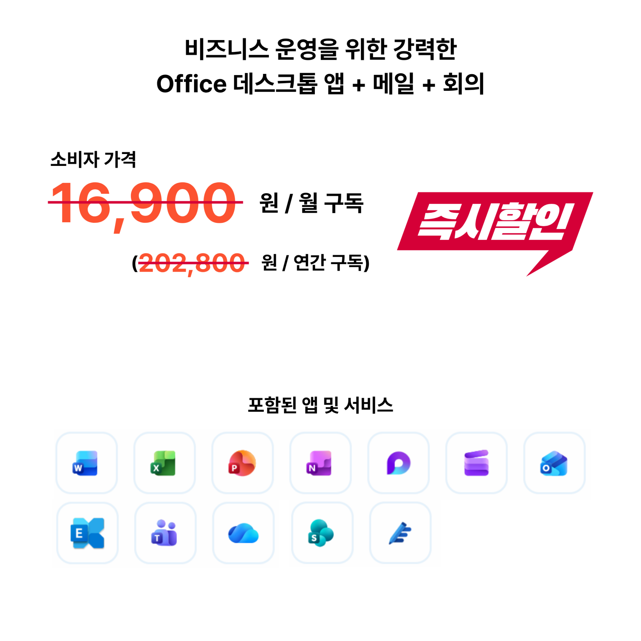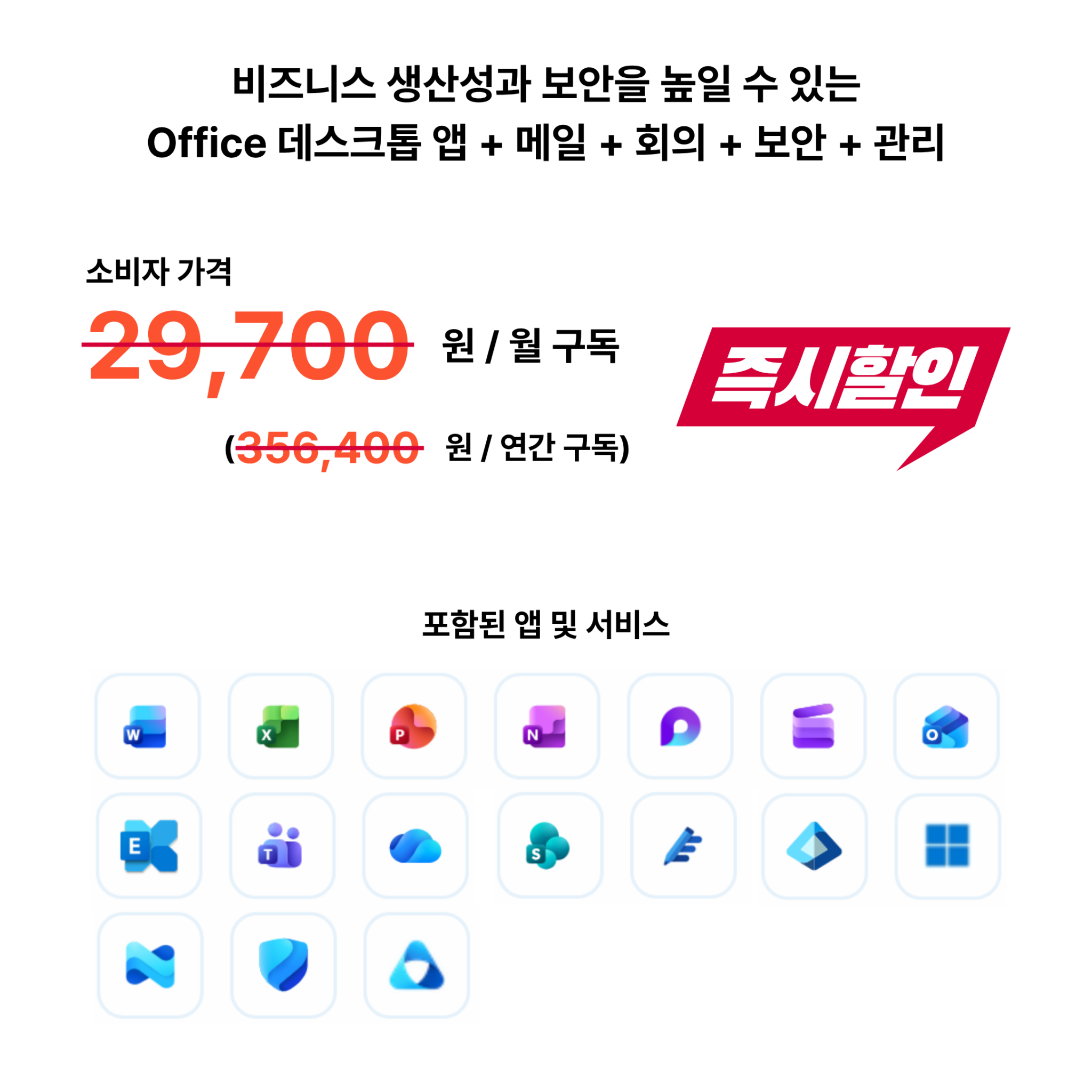• 비즈니스 요구 사항에 맞는 10개 이상의 앱 (Microsoft Loop, Clipchamp, Planner, Forms 등 포함)