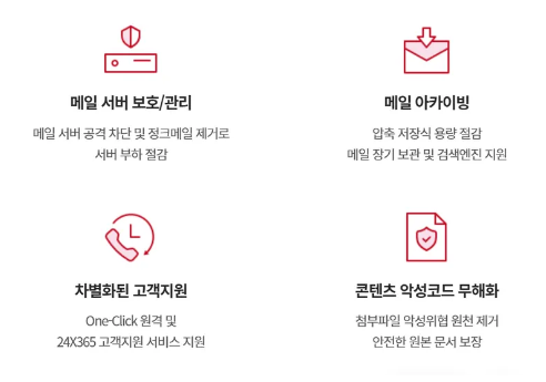 이와 동시 스팸스나이퍼는 기업 업무환경에 최적화된 보안 환경 구성으로 일일 최대 100만 건의 메일 트래픽을 처리하며 안정적인 서비스를 제공하고 있습니다.